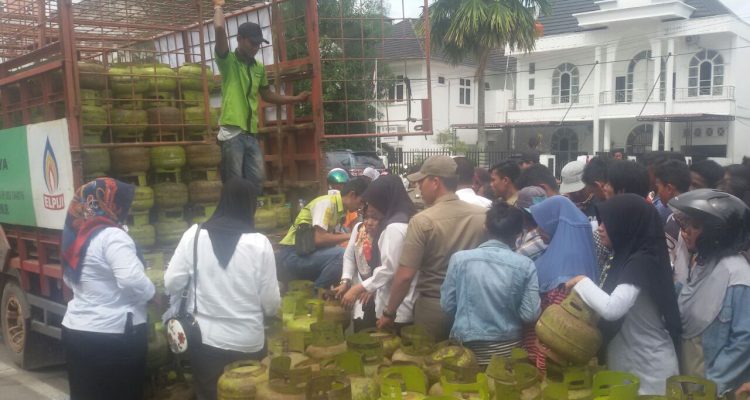 ROHIL,Mandiripos.com- Dinas perindustrian dan perdagangan Rokan Hilir mengelar operasi pasar murah gas elpiji 3 kilogram