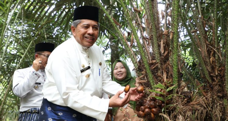 Dayun–Kegembiraan terpancar dari raut wajah Mukadi (62) pasalnya, hari Jumat yang penuh berkah itu, kebun salak milikinya di kunjungi orang nomor satu di negeri istana.