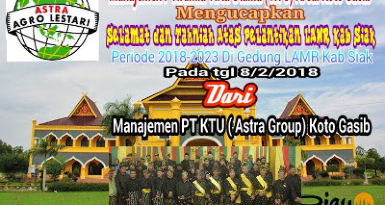 Manajemen PT KTU Mengucapkan Selamat dan Tahniah Pelantikan LAMR Kab SIak Periode 2018-2023 Siak|Kamis , 8 Februari 2018oleh Fitriadi