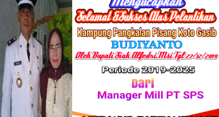 PT.SPS Mengucapkan Selamat dan Sukses Pelantikan Penghulu Kampung Pangkalan Pisang Koto Gasib Siak|Jumat , 27 Desember 2019oleh Fitriadi