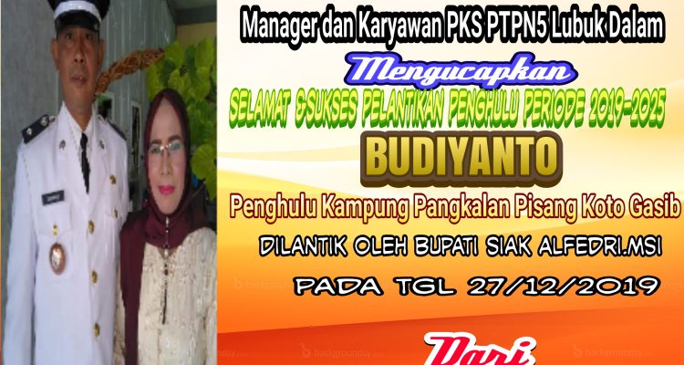 Manager PKS PTPN5 Lubuk Dalam Mengucapkan Selamat dan Sukses Pelantikan Penghulu Kampung Pangkalan Pisang Siak|Jumat , 27 Desember 2019oleh Fitriadi