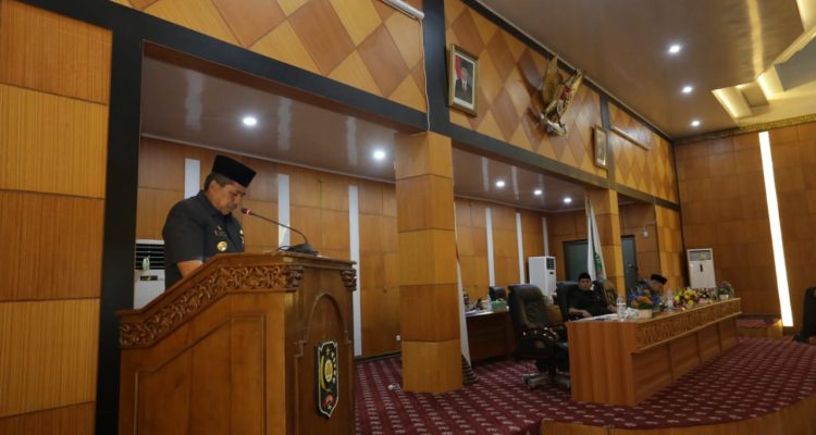 SIAK,MANDIRIPOS.COM-Bupati Siak Alfedri menyampaikan jawaban Pemerintah Daerah terhadap pandangan umum Fraksi DPRD pada Penyampaian 9