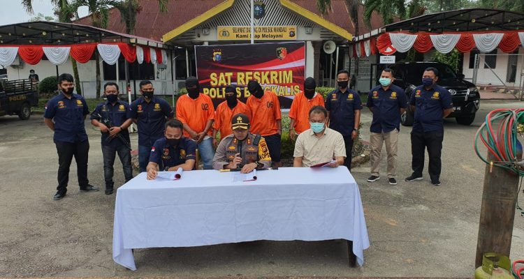 DURI – Polsek Mandau pada Senin pagi (10/8/30) melakukan Press Release pengungkapan kasus pencurian dengan
