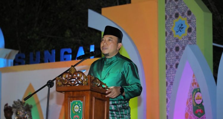 SUNGAI MANDAU-Wakil Bupati Siak, Husni Merza resmi membuka Musabaqah Tilawatil Quran (MTQ) Tingkat Kecamatan Sungai Mandau ke-13, di Halaman SMPN 2 Kampung Lubuk Umbut, Kecamatan Sungai Mandau, Selasa (4/7/2023) Malam.