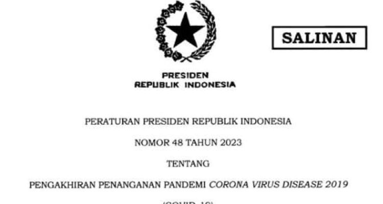 Jakarta-Pemerintah mengeluarkan Peraturan Presiden Republik Indonesia (Perpres) Nomor 48 Tahun 2023 tentang Pengakhiran Penanganan Pandemi Corona Virus Disease 2019 (COVID-19). Peraturan tersebut diterbitkan sejalan dengan status pandemi COVID-19 yang telah dinyatakan berakhir dan status faktual COVID-19 telah berubah menjadi penyakit endemi di Indonesia.