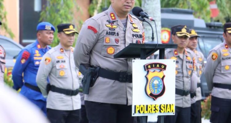 SIAK – Kapolres Siak AKBP Asep Sujarwadi pimpin Apel pergeseran pasukan dalam rangka pengamanan pemilihan