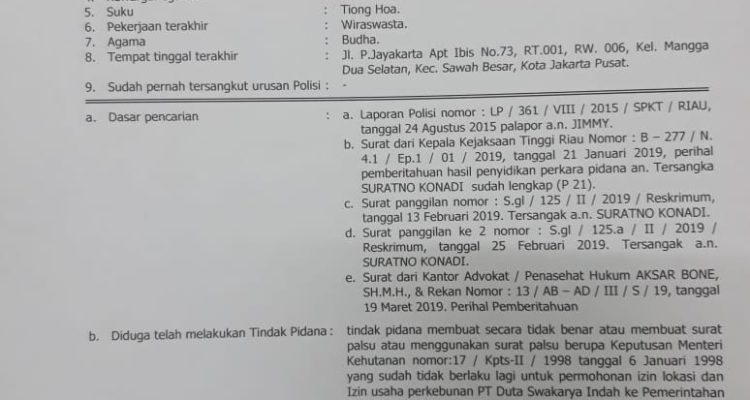 #polda Riau#PT DSI# Direktur Tersangka#Palsukan Keputusan Menhut