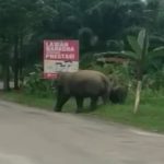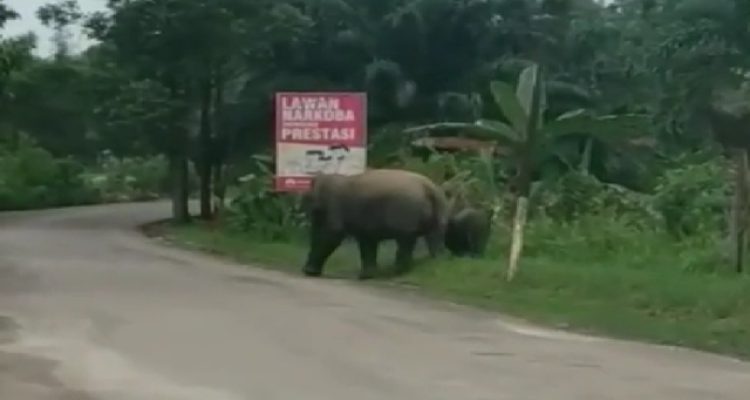 DURI – Gajah Liar yang bergandengan dengan anaknya mengejutkan pekerja dan personil dari Polsek