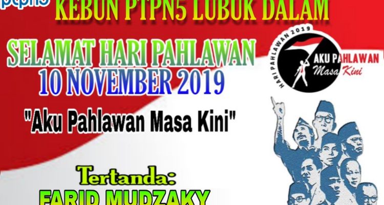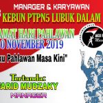 Manager dan Karyawan PTPN5 Kebun Lubuk Dalam Mengucapkan Selamat Hari Pahlawan Siak|Minggu , 10 November 2019oleh Fitriadi