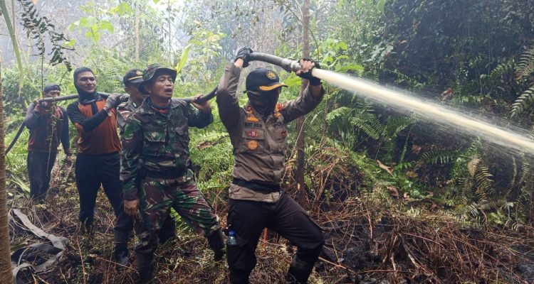 Rupat Utara-Kapolres Bengkalis Sigit Adiwuryanto sudah 6 Hari Bersama Warga, melakukan upaya pemadaman di Hutan