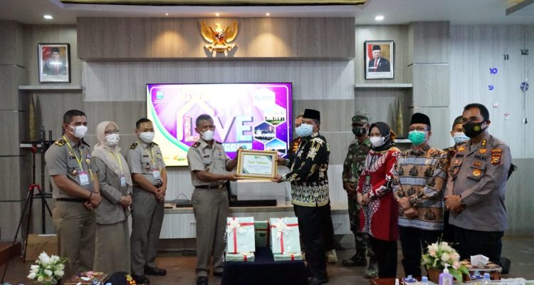 SIAK-Bupati Siak Alfedri menyerahkan sertifikat tanah geratis kepada masyarakat penerima program Pendaftaran Tanah Sistematis Lengkap