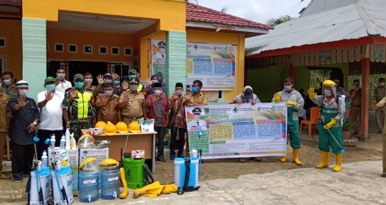 Bagan siapi-api— Polres Rohil Semprotkan cairan disinfektan ke rumah masyarakat terkonfirmasi Positif Covid-19 dan berikan