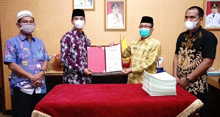 SIAK–Sekretaris daerah kabupaten Siak Arfan Usman melakukan penandatanganan berita acara cara serah terima sertifikat program
