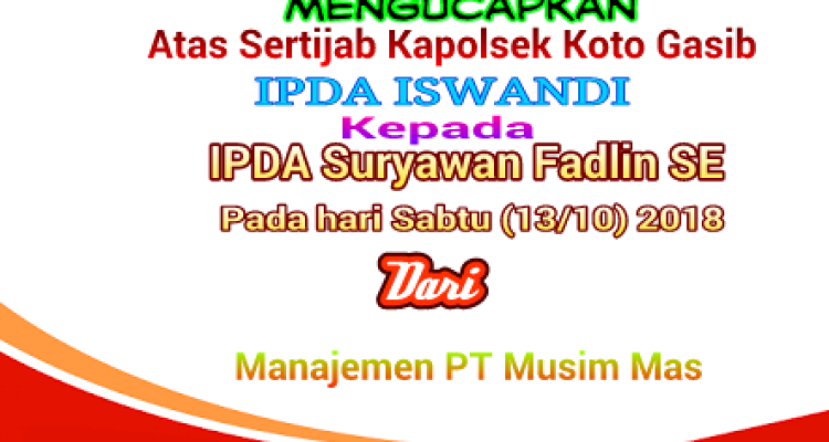 PT Musim Mas Mengucapkan Selamat Atas Sertijab Kapolsek Koto Gasib Siak|Sabtu , 13 Oktober 2018Selasa , 16 Oktober 2018oleh Fitriadi