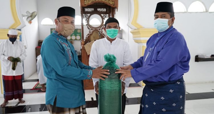 SIAK-Setelah selesai melakukan pembagian sembako di Kampung Berbari Kecamatan Pusako, Bupati Siak Alfedri bersama rombongan