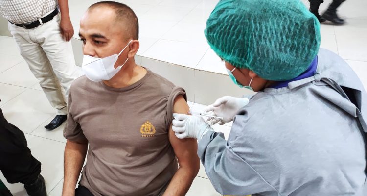 BAGAN BATU – Personil Kepolisian Sektor (Polsek) Bagan Sinembah Polres Rokan Hilir Melaksanakan Vaksinasi Sinovac