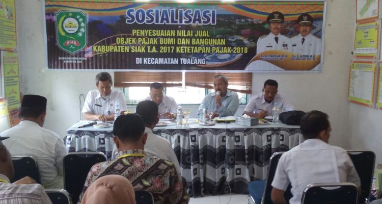 SIAK,Mandiripos.com-Camat Tualang Zalik Efendi melalui Kasi Pemerintahan Musri membuka Sosialisasi Penyesuaian Nilai Jual objek pajak