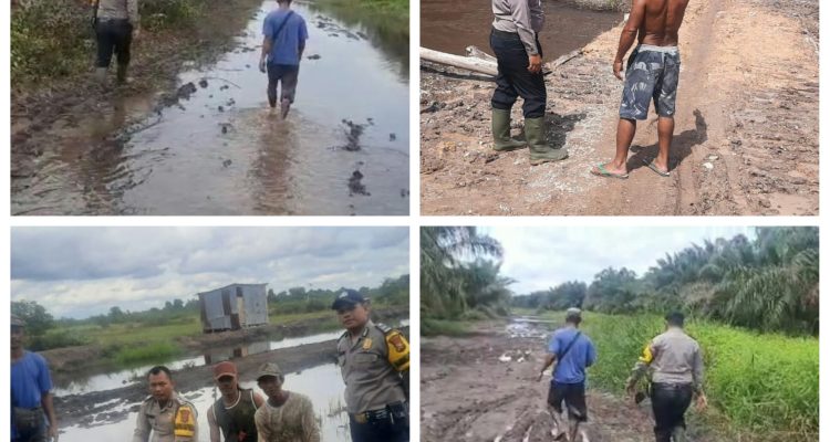 SEI MANDAU-Pastikan warganya aman dari banjir, bhabinkamtibmas sungai selodang Polsek Sei Mandau Aipda Sandro Yon
