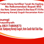 Telah Hilang Sertifikat Tanah Milik Sumani