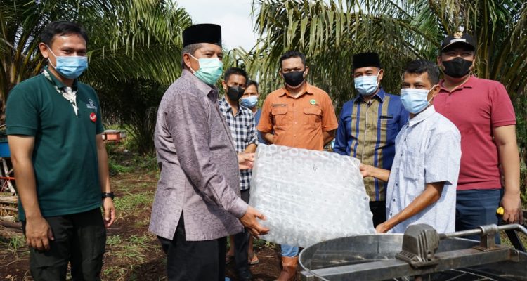 SIAK-Bupati Siak Alfedri melihat langsung budidaya ternak lebah madu jenis Melivera di kampung Teluk Rimbo,