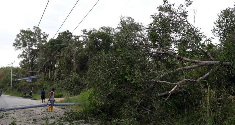 tiang listrik PlN tertimpa kayu