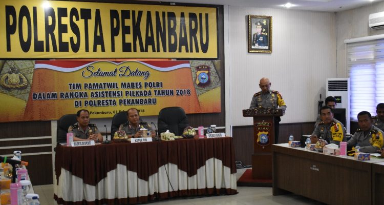 PEKANBARU,Mandiripos.com- Polresta Pekanbaru mendapat kunjungan dari Tim Pamatwil Mabes Polri Asistensi Pilkada Serentak Tahun 2018,