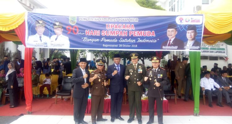 ROHIL,Mandiripos.com- Upacara peringatan hari sumpah pemuda ke 90 di Kabupaten Rohil dipimpin langsung Bupati Rohil,