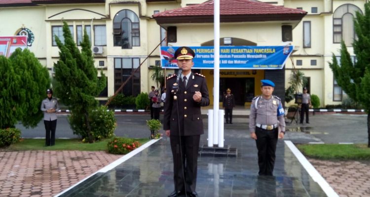 Ujungtanjung, Mandiri Pos–Kapolres Rokan Hilir AKBP Sigit Adiwuryanto memimpin langsung pelaksanaan upacara peringatan hari kesaktian