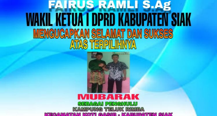 Wakil Ketua I DPRD Siak Fairus Ramli.Sag Mengucapkan Selamat Atas Terpilihnya Mubarak Sebagai Penghulu Teluk Rimba Siak|Rabu , 20 November 2019oleh Fitriadi