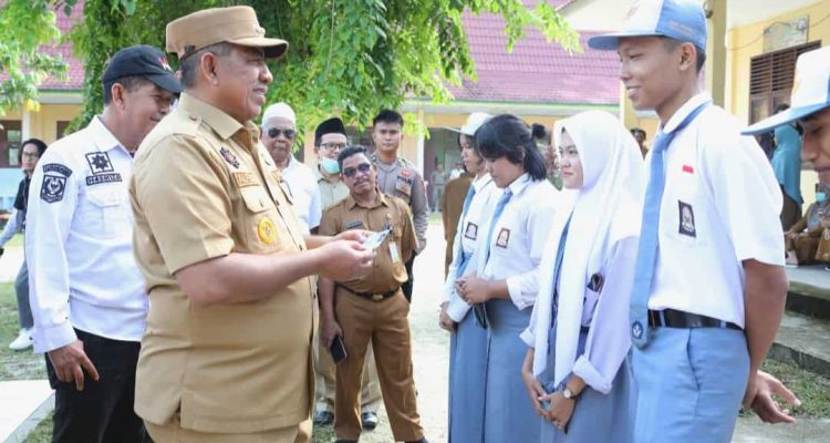 Bupati Siak Alfedri Serahkan Kartu Tanda Penduduk-Elektronik Kepada Pelajar SMK 1 Koto Gasib
