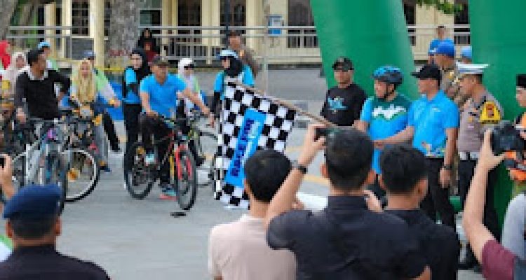 SIAK – Wakil Bupati Siak Husni Mirza melepas rombongan fun bike Tour de Siak, terlihat antusiasme